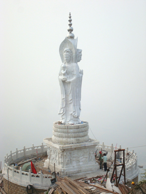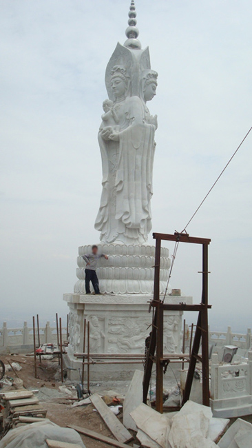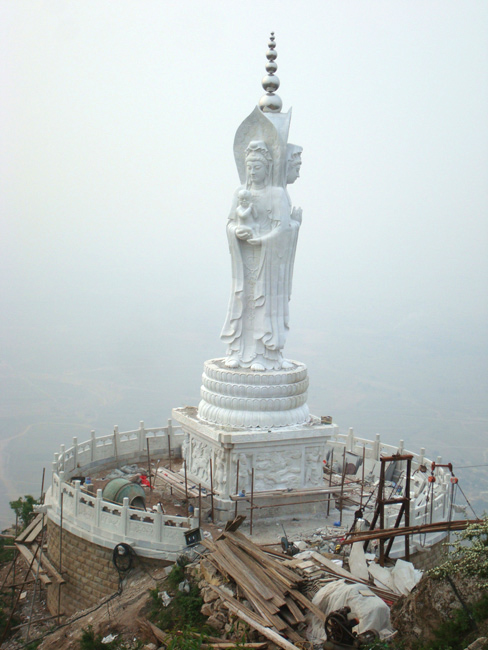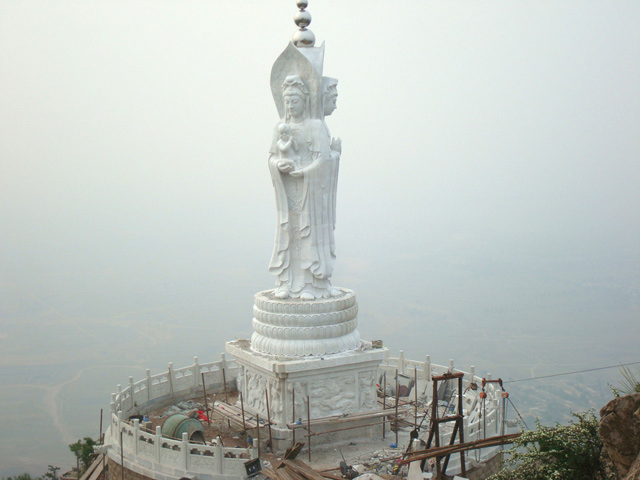 山西省懷仁縣清涼山2010安裝漢白玉雕塑三面觀音雕塑。底座三米八高,觀音十二米高,總高15.8米,材質用北京房山漢白玉由漢白玉雕刻,三個方向分別是送子觀音,凈水觀音,如意觀音三個面孔,面向登山道路的一面是送子觀音的形象。